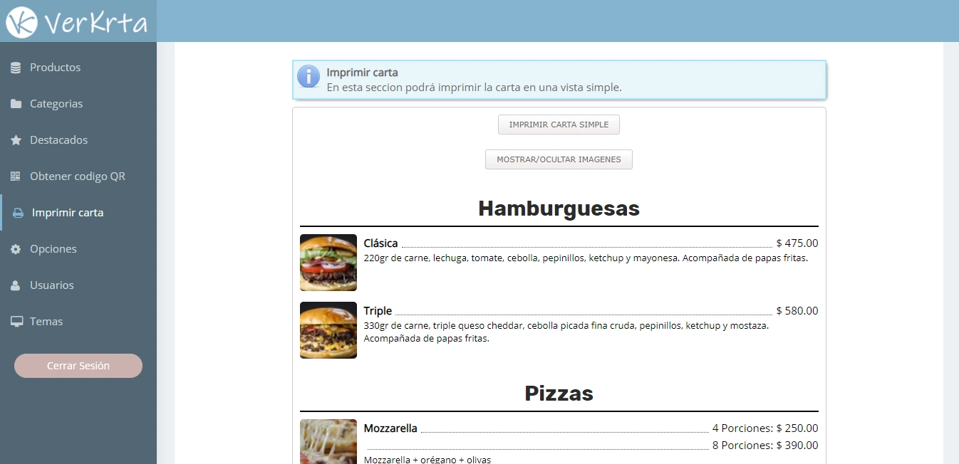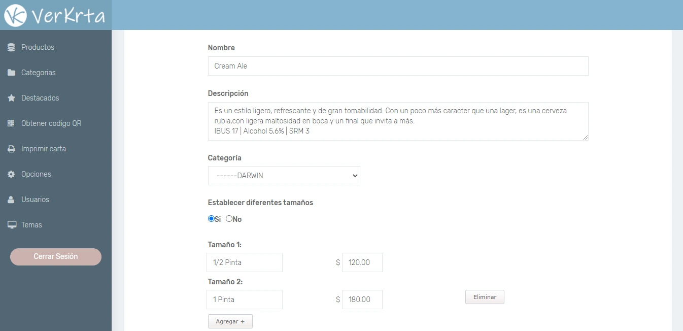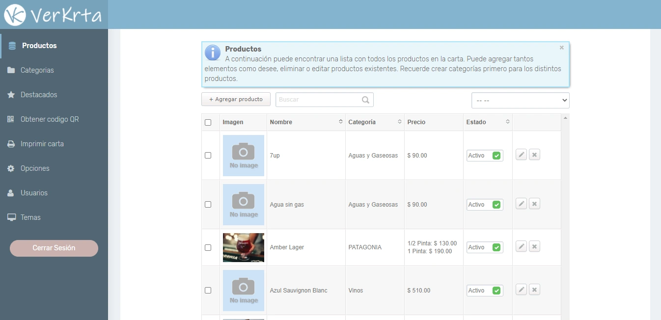- Agregar, eliminar, modificar y activar/desactivar productos.