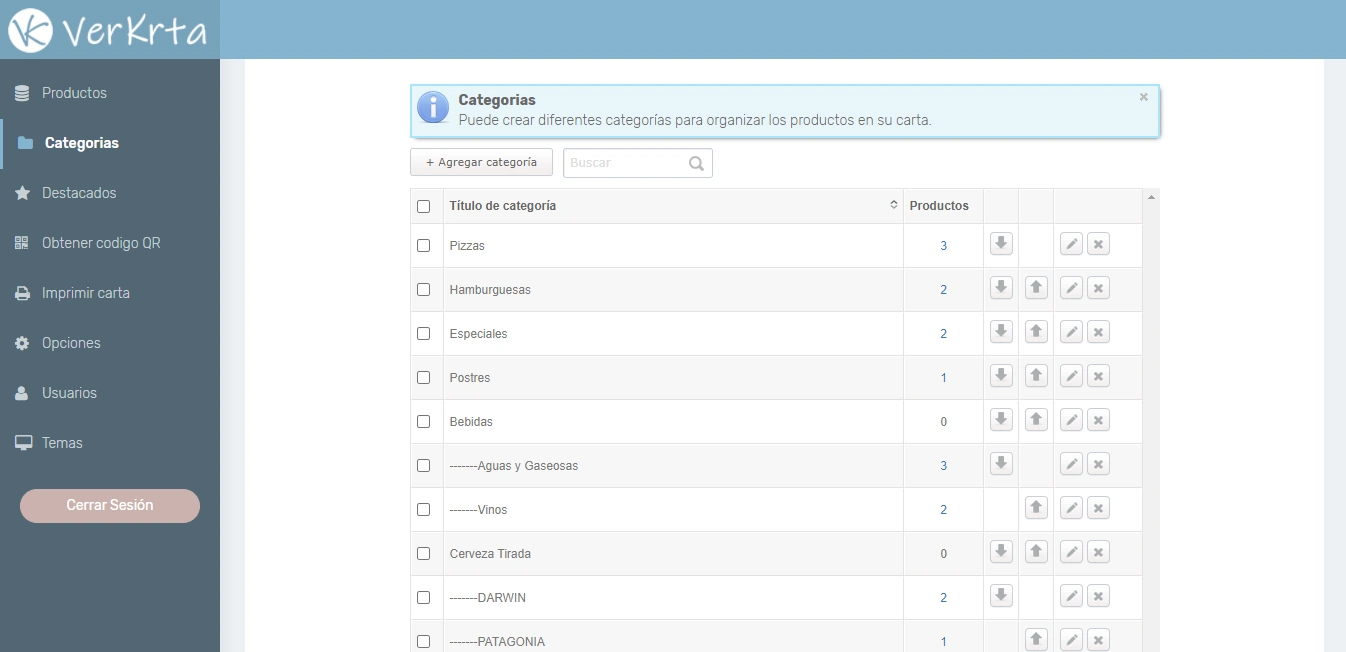 - Agregar, eliminar y modificar categorías.