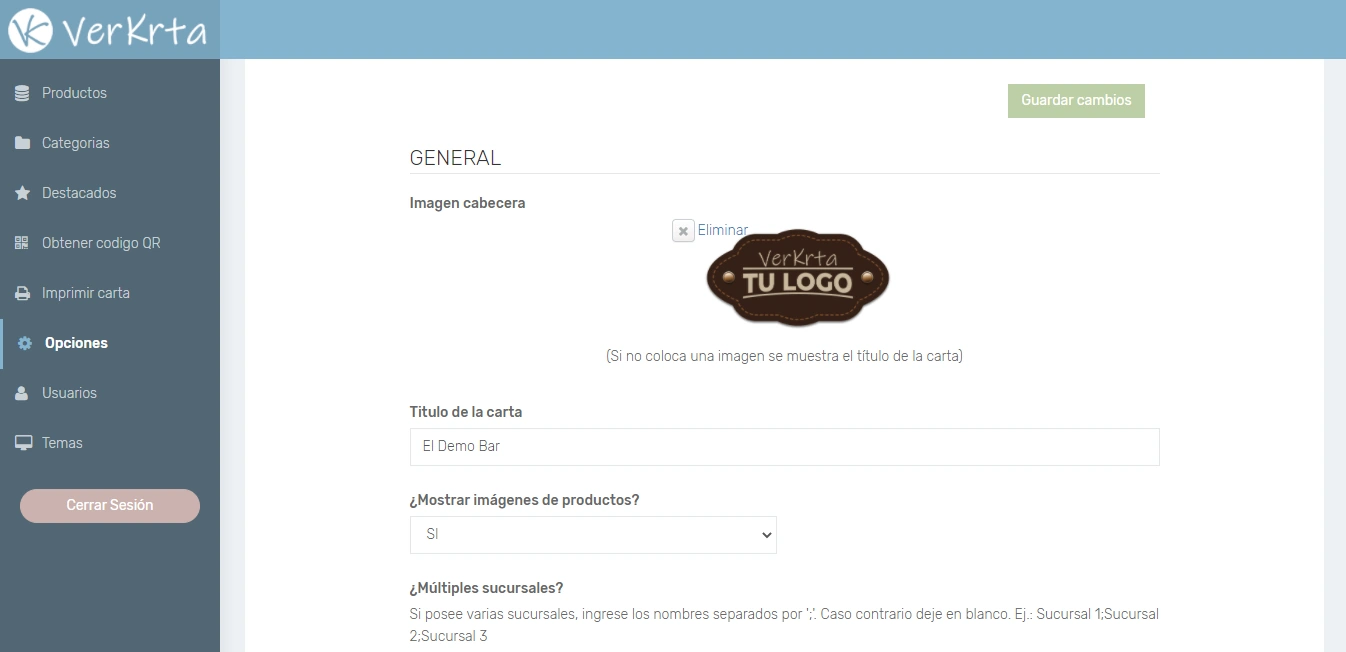 - Establecer nombre del local y subir su logo que lo identifica.