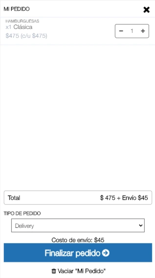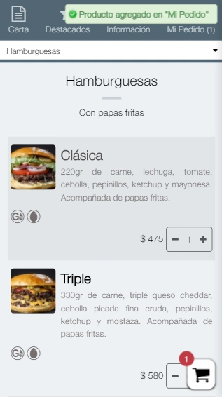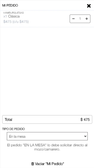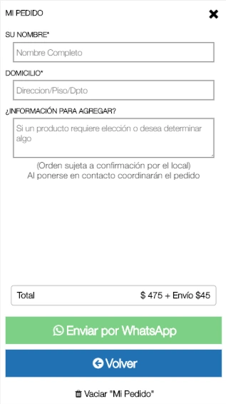 No. El cliente le envía un WhatsApp desde el catálogo con los detalles. Los pedidos 'EN EL LOCAL' se hacen directamente al mozo/camarero en el local.